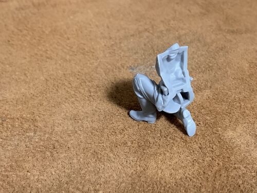 3Dスキャンのタミヤの兵士たち。 美しきパーツ分割と、パリッパリっとパーツが合うべきところに合う感じはどこかメカニカルな感じすら漂う。 気持ちよく組み立てていくが、双眼鏡を持った兵士の双眼鏡の角度だけは人の手で合わせてやる必要がある。 というか…
