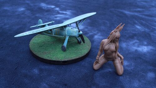 サイトウヒール氏が手がけるLOVELOVEGARDENシリーズだけども、ヌギカケガールは塗装の対象として一番面白いと思う。少し上がった腕に、ダボっとしたツナギ。サイドからの光を浴びると露骨に明暗がつく。その辺を観察しながら塗る。今回はその明暗がくっきり…