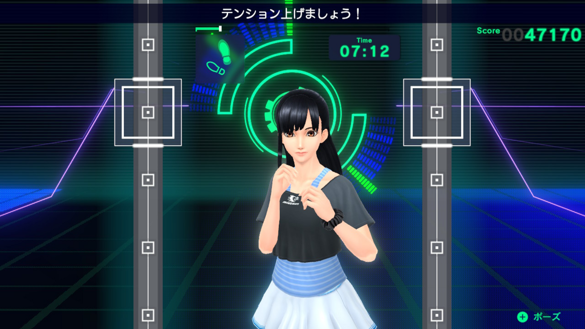 自分の現実世界での目標と、ゲームの中の目標が完全にイコールではないというか、あくまでも運動を習慣化するための装置にしかすぎないみたいな、そういうゲーム。僕みたいに「痩せたい!」が第一の人もいるだろうし、反対に「良い点とりたい」が勝る人もいるかもしれない。リラックスして動いても、キレよく動いても点数は変わらないんですよね。点数が悪くてもハードに動けばダラダラ汗かく、みたいな感じです。なので「お前のやりたいことは何なんだ?」と問いかけられている度合いは他のゲームよりも濃い気がします。それだけプレイヤーにゆだねる部分が結構多いということでしょう。